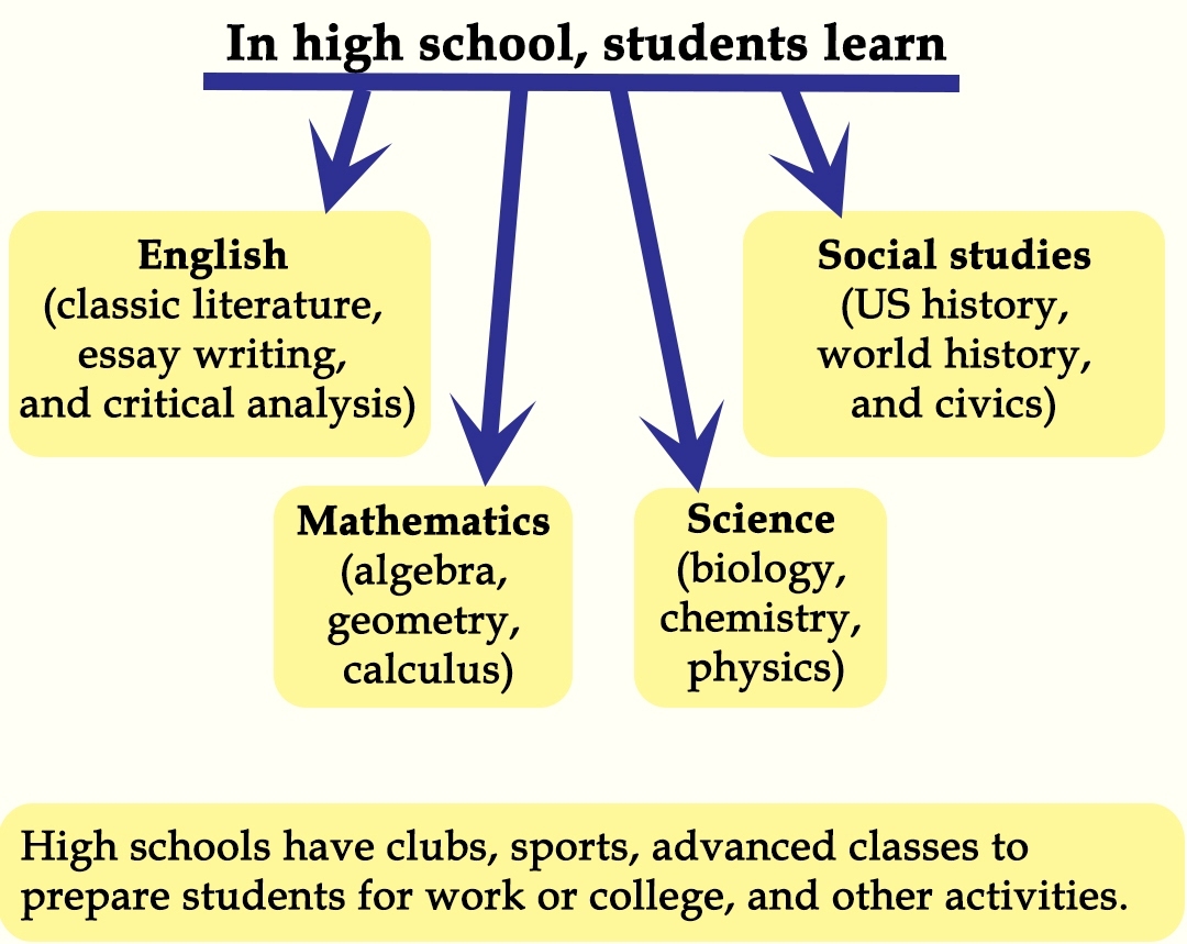 2. Where is Nancy Reagan High School located? Do you know what subjects American students study in High school?