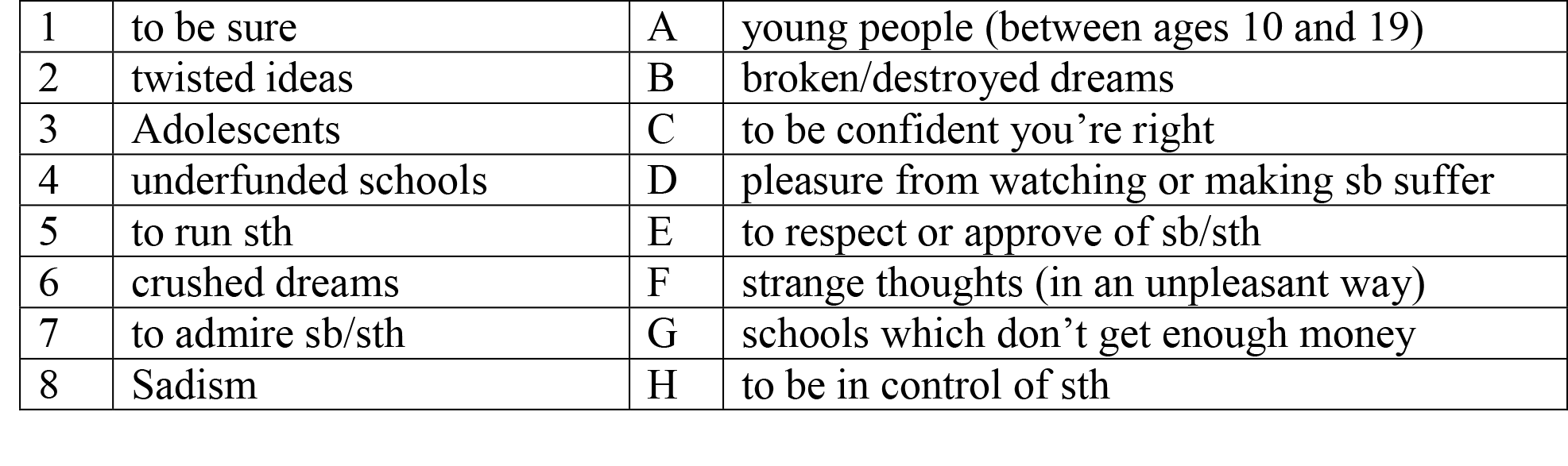 2. Find the synonyms and make up your own sentences using the words from the first column: